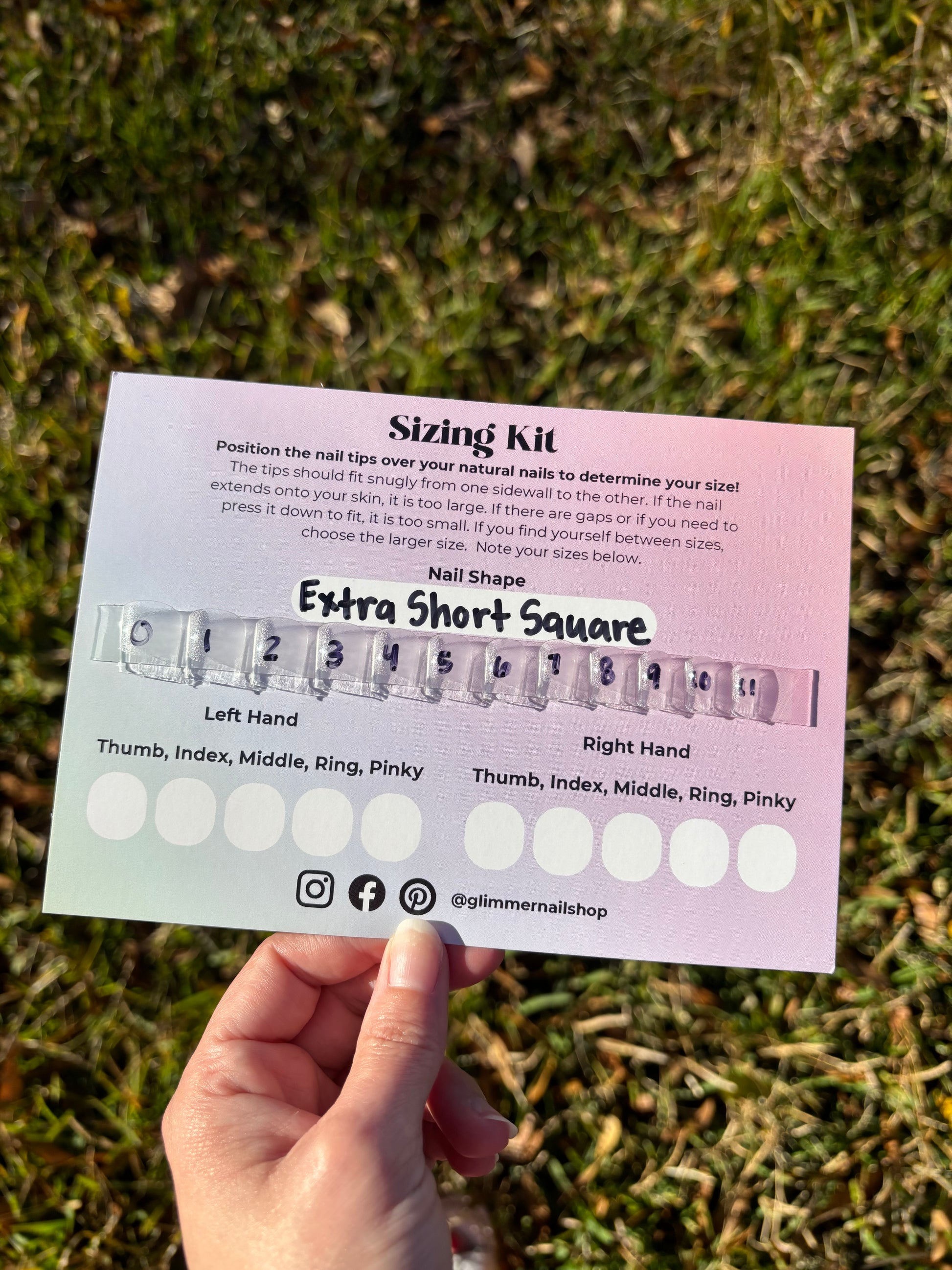 Each nail kit comes with 12-15 clear nail tips for measuring your perfect nail fit. This sizing kit is essential for your custom nail set.